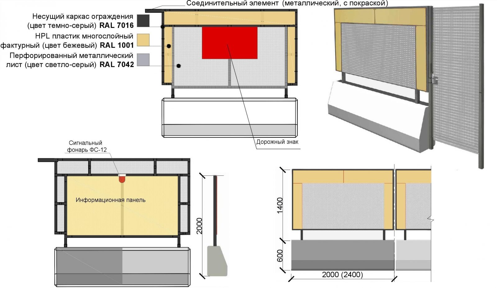Соответствуют концепции типовых ограждений на строительных площадках города